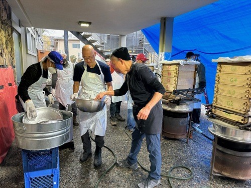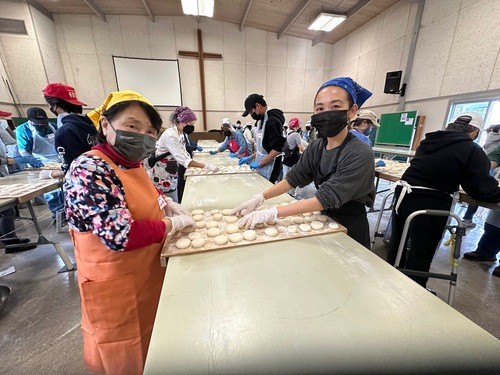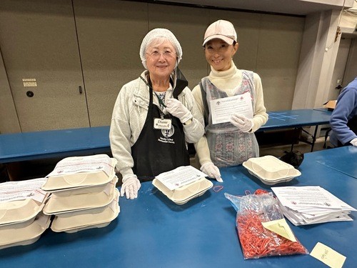 Jane Kawasaki and Yu-Ai Ki volunteers were hard at work preparing lunch for all 200 workers.
