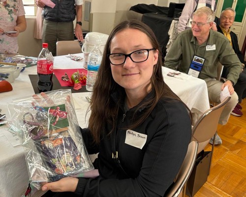 Nadya Brown shows off the gift bag everyone received.
