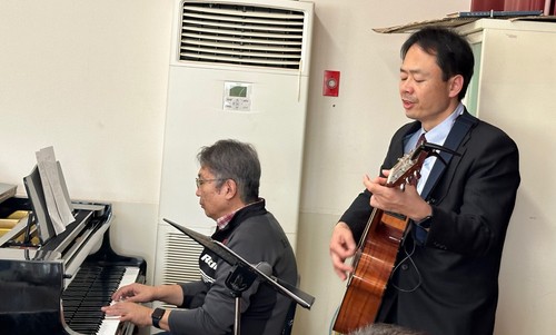 A familiar site revisited...Junichi on keys and Hajime on guitar.