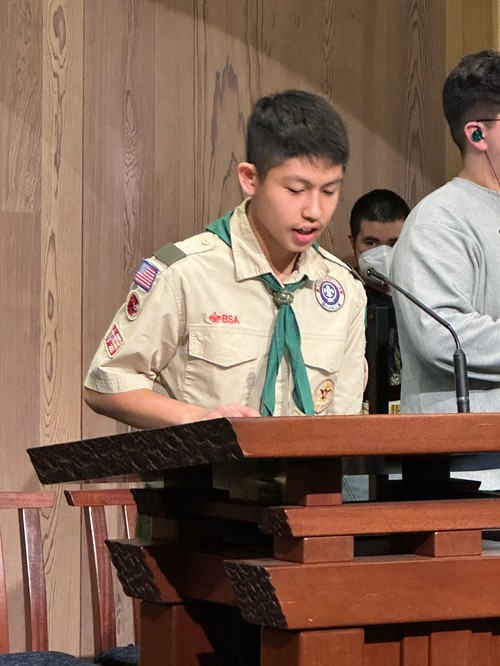 Wesley was honored with the presence of Troop 201 Scouts above and Pack below for Scout Sunday, Feb. 9.