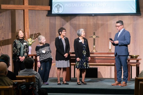 Installed Officers present (from left): Shizuko Adachi, Joanne Kumano, Terri Koike, and Bev Acuna