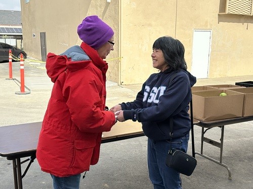 Lori Longmire, on behalf of the Tuesday Food Distribution Program, presented Terri with a donation from the group, to help with her supplies as we all bid her safe travel.
