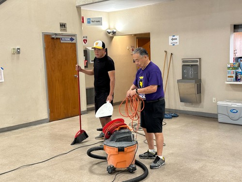 * Wayne Kuwada and his apprentice Brent Nunokawa who stayed way after Cleanup Day ended to finish up the Fellowship Hall floors.