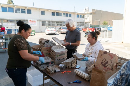 On Sunday, September 21, more than 20 volunteers gathered to support Wesley's Compassion Ministries. Special projects included packing dry bags of canned goods for our neighbors, pairing donated socks for the unhoused, preparing egg cartons for distribution, and general cleanup at Compassion Workshop. "We wanted to give an opportunity to serve for people who cannot come Tuesday or Friday mornings," noted Compassion Chair Clarissa Johnston-Abril. Lori Longmire and Brian Hamilton led the food packing. Special thanks to Lilian Flores who invited several Grant Elementary families to come help. "The families just wanted to show their thanks by giving back," Lilian said. Compassion hopes to have more events like this in the future.