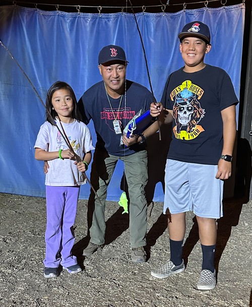 Fishing Derby winners: Clara and Hideo (Mia not pictured) with John Ng.