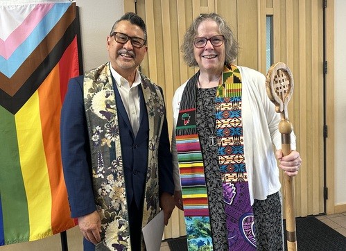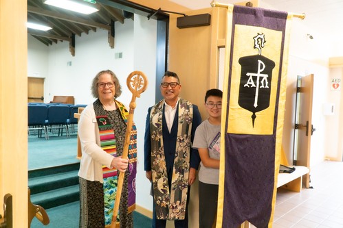 Bishop Sandra Olewine, Rev. John Oda and Jace just before processing into the Sanctuary.