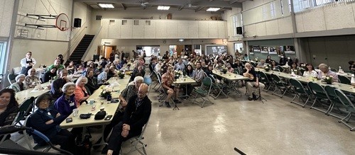 A celebration such as this could not have happened without the church coming together and we are thankful. Overall organizer for this affair was Lori Longmire, and huge accolades to her for such a fine job. High-fives go to Tina Urata and the Ukuele Band and to sound technician, Dave Brown. Weren’t you impressed with all the table decorations? Thanks go out for the beautiful ikebana gracing each table created by none other than Misao Kusuda and Terri Koike; the large cranes from the hands of Judie Kanemoto and all the origami tsuru and flowers from members of the United Women in Faith. Oh, and let’s not forget that huge array of sweet yummy manju? These delightful treats were all-hand-made by a committee headed by Kristin To and Kathy Haneta. Taking care of set up were Byran Longmire and Ed Gibo, and many thanks to our faithful and ever in the background, dishwasher, Wayne Kuwada. Another in the background was Hikakru Bakoshi, snapping and videotaping this event for review and our historical annals. It was a church-wide event and many hands were involved in its success. We give God the glory!